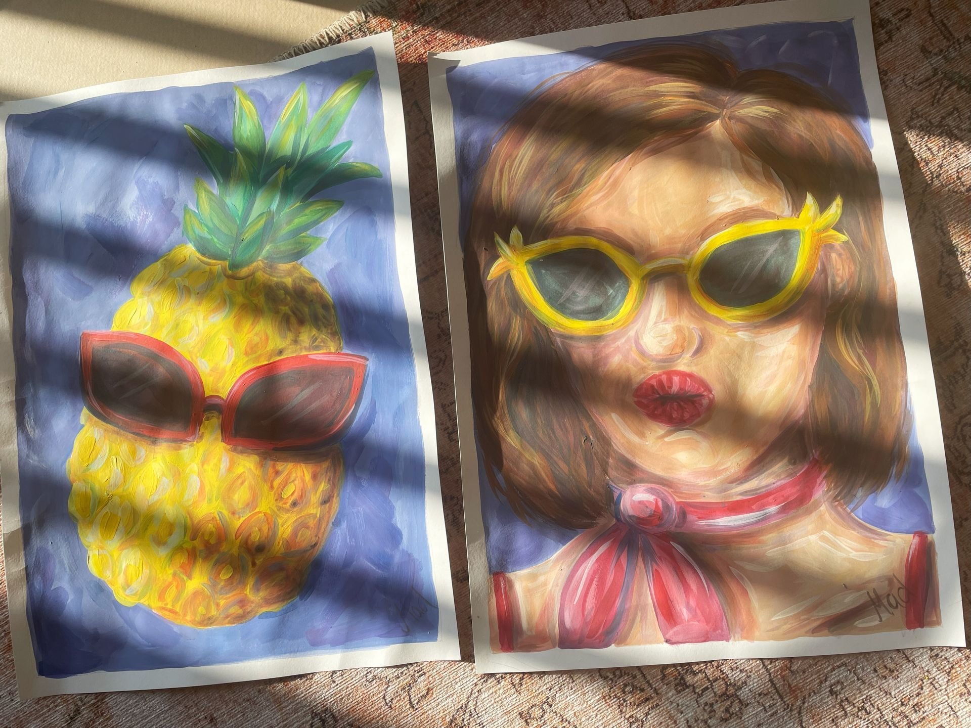 Dennoch leuchten ihre hellgrünen Augen in dem Bild. Zudem habe ich das Bild mit Gold- und Silberfarbe veredelt.